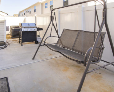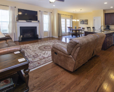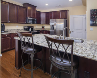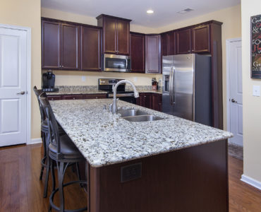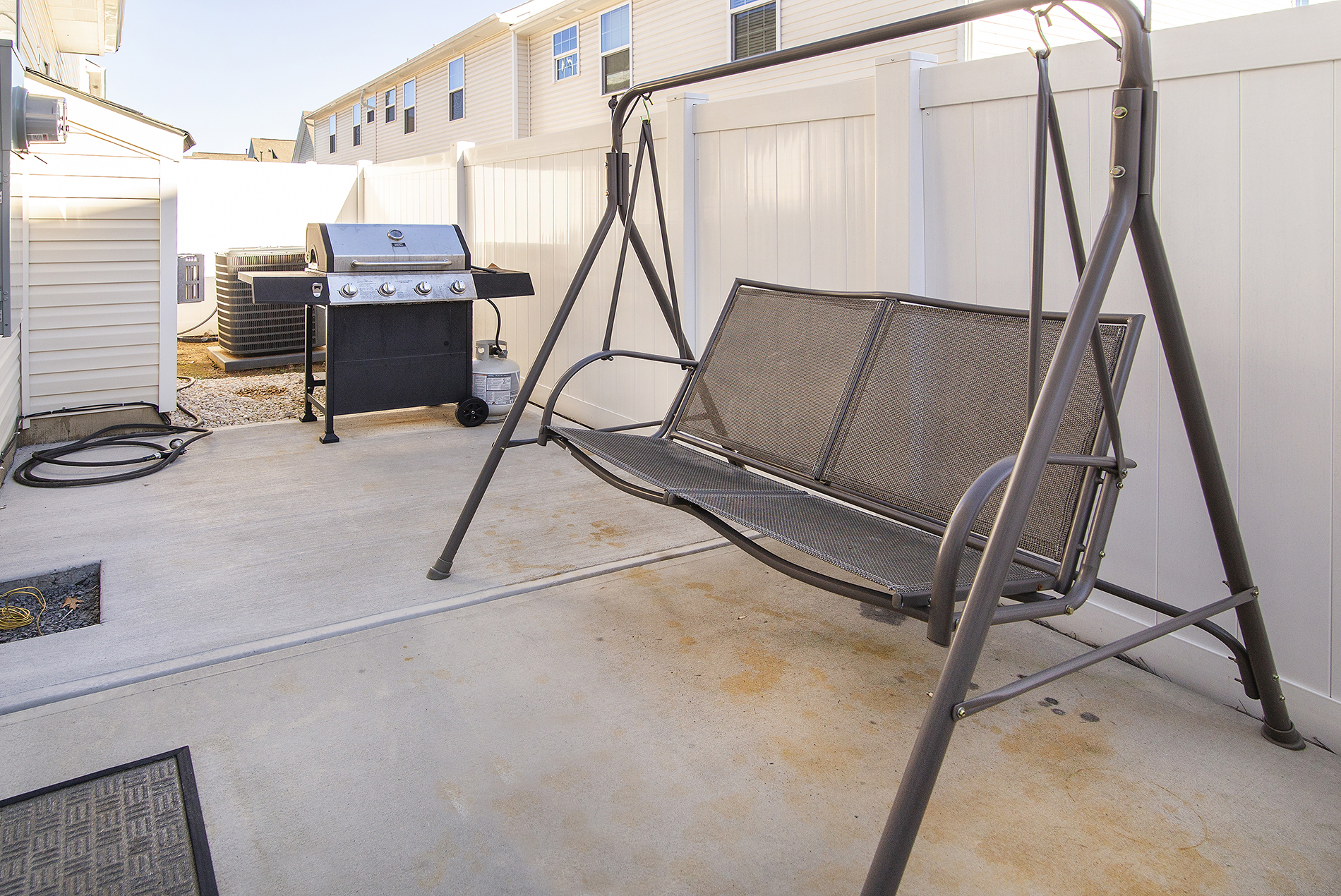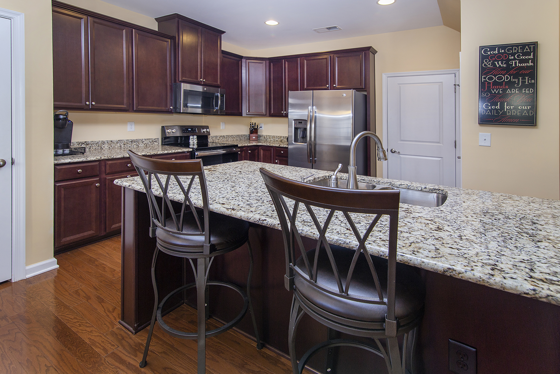 Upgrades galore in this almost new Stonegrove Townhome! End unit with 2 car carriage style garage has stone accents and is ready for a new owner. Inside you will love the hardwood floors and open floor plan. Spacious, light and bright as owner added 2 foot bump out to main level. Cozy living area with gas log fireplace and extra can lighting added. Kitchen has eat in island, granite, and stainless appliances. Upstairs the master bedroom is large with trey ceiling and 2 walk in closets! Master bathroom has tile floors, tile shower with dual shower heads, and granite. The 2 secondary bedrooms are good size. Upstairs bathroom upgraded with tile floors, tile shower, and granite. Laundry room with tile Also a loft area for hobby, office or reading area. Outside there is a fenced enclosed patio and extra side yard – includes irrigation system too! Visitor parking spaces nearby. Beautiful gated community with pool, fitness, and clubhouse! Super location – close to everything!
