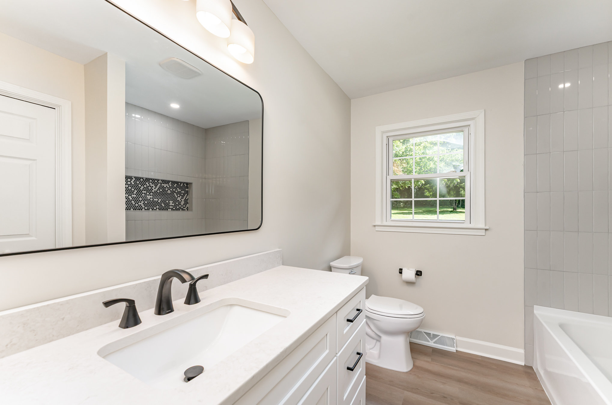 Remodeled ranch — ready for its new owner! Expect to be impressed! Features include new kitchen with soft white cabinetry, quartz countertops, oversized sink, stainless steel appliances and a stylish barndoor pantry. All bathrooms updated with new vanities and quartz tops — hall bath offers a tub/shower with tile surround while primary bath shines with large tile shower and glass door. Former living/dining room transformed to flex/office space and dream 8×11 laundry room. Updates go far beyond new flooring and paint — custom shower niches, new closet doors, new fixtures, sconce lighting, 14 new window sashes, added concrete with drain, new front landscape, & new recessed lighting. You will love the large rec/bonus room with wood-burning fireplace, black ceiling tiles & fans — perfect for entertaining! Oversized side-load garage with utility closet. Huge .85-acre lot NO HOA in a convenient location near major roads & dining. A must see!