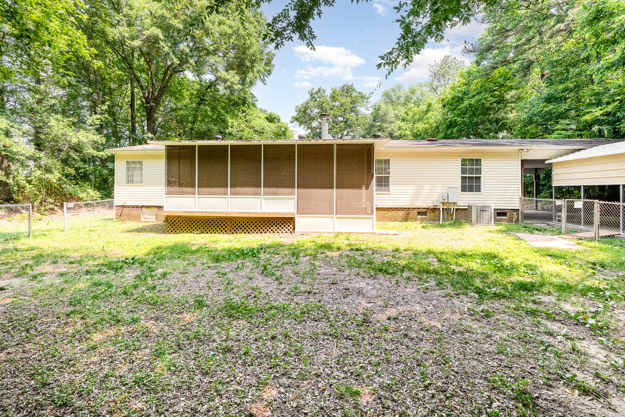 Private spacious ranch home on large 1.31-acre lot. Property includes covered parking, a carport, and an outbuilding—plenty of space for vehicles, RVs, or recreational gear. Inside, you’ll find a living room featuring a wood-burning fireplace, ceiling fans, and easy access to a screened porch—perfect for year-round enjoyment. The kitchen has abundant cabinet and counter space, a center island, pantry cabinet, meal-planning desk, and includes all the appliances. The adjacent laundry/utility room includes a closet, washer & dryer, w/ additional space for storage. Open, split-bedroom floorplan offers privacy and comfort for everyone. The primary suite features dual walk-in closets and a large bath with double vanity, jetted tub, separate shower, and skylight. Secondary bedrooms are generously sized with good closet space. Relax on the screened porch the hot tub already in place! Partially fenced yard. All this in a peaceful setting that’s convenient to major roads, shopping, and dining.