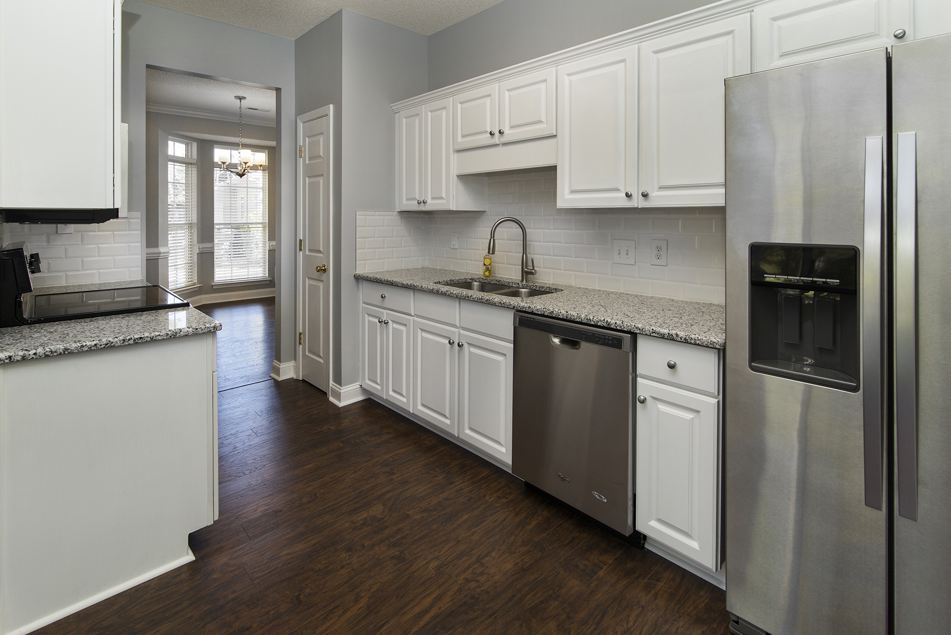 Updated townhome in convenient location is fresh & move in ready! New Pergo flooring, carpet, fresh paint & updated fixtures! Kitchen has granite, backsplash & stainless appliances-refrigerator included! Main level master bedroom with cathedral ceiling & master bathroom has new vanity with marble, tile, tub with tile surround. Granite in 1/2 bathroom & bathrooms have updated lights & mirrors. Upstairs loft is huge, 2 more bedrooms are good sized w/ big closets. End unit and 1 car garage! Home Warranty included!