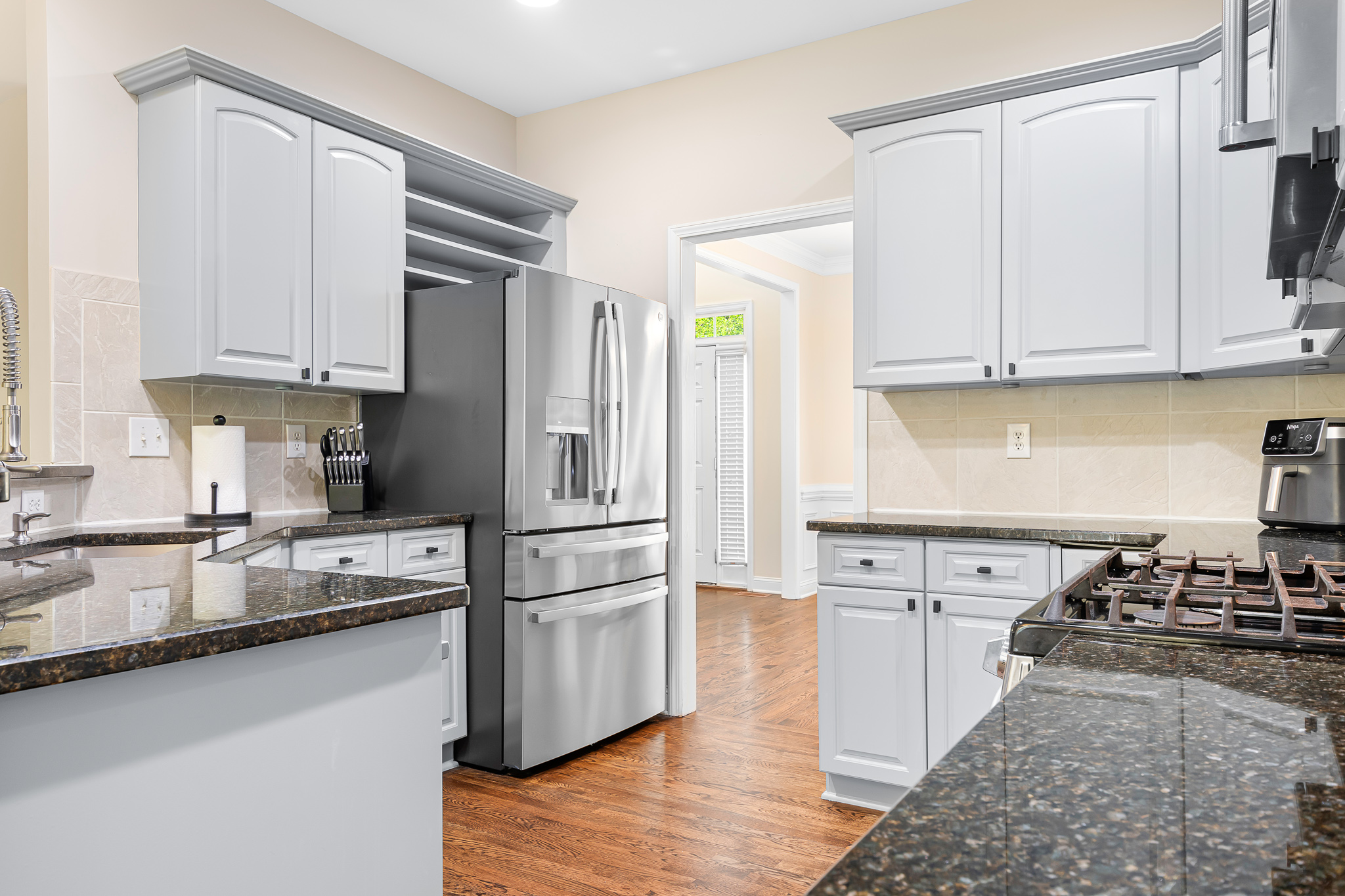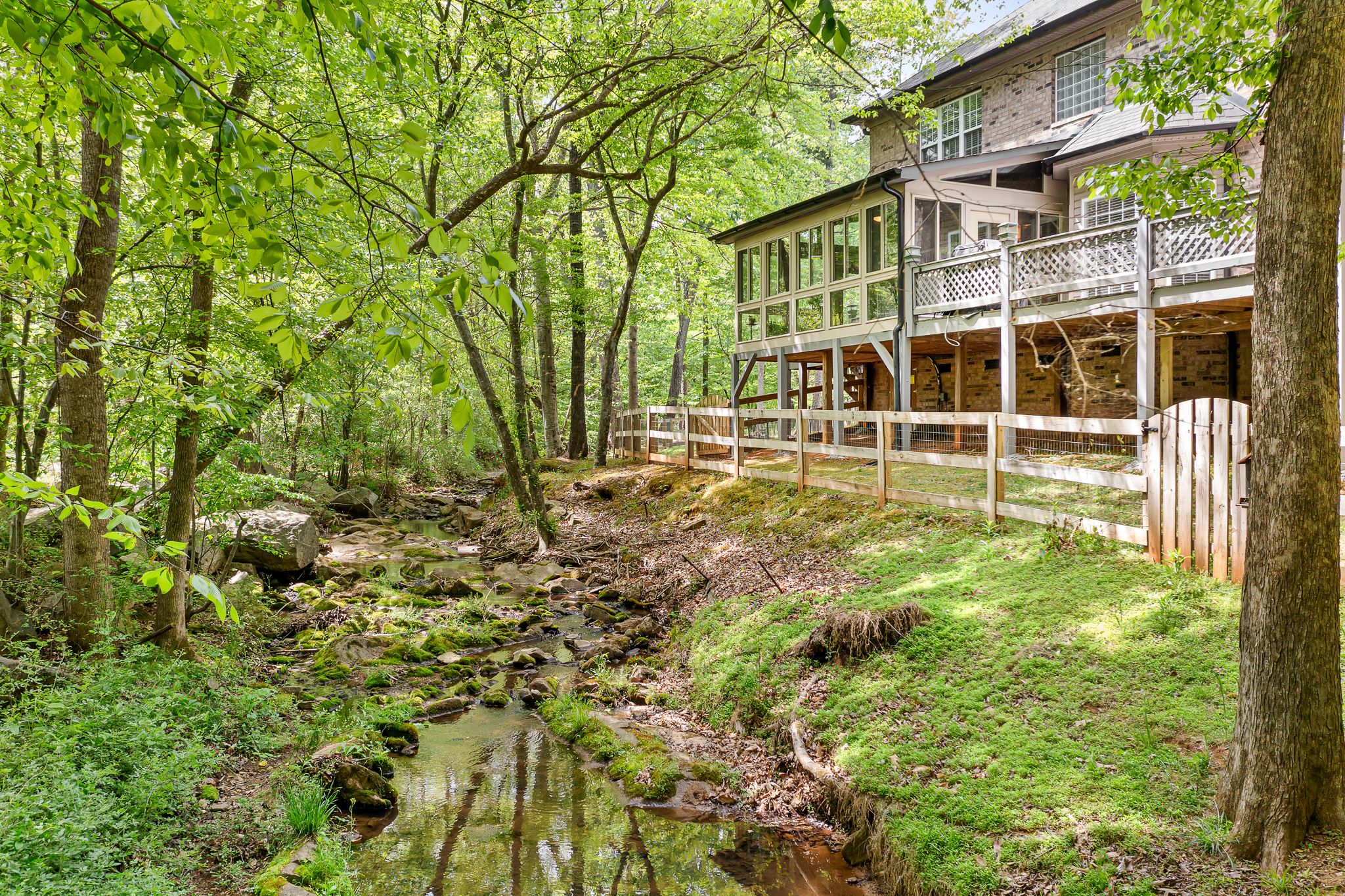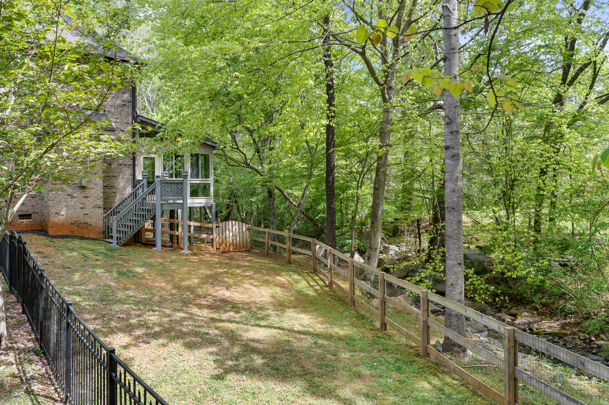 Tucked away on a quiet cul-de-sac in Mint Hill, this full brick home offers a rare blend of space, functionality, and a truly special natural setting. Situated on over an acre, the fenced backyard backs to a gently flowing creek with natural rock features—creating a peaceful, mountain-like retreat right at home. Enjoy your morning coffee or unwind in the evening from the sunroom or spacious deck, both perfectly positioned to take in the sights and sounds of the water. Inside, the home features 4 bedrooms and 3 full bathrooms, including a main-level bedroom and full bath—ideal for guests or multi-generational living. The layout stands out with both a dedicated dining room and a home office offering flexibility that’s hard to find in similar homes. The kitchen is well-appointed with stainless steel appliances, gas range, and a raised eat-in bar. Upstairs, you’ll find a spacious primary suite and bonus room, perfect for additional living or recreation space. Fresh paint and no carpet throughout complete the move-in ready appeal. A rare opportunity for buyers seeking privacy, nature, and a home that truly feels like a retreat.